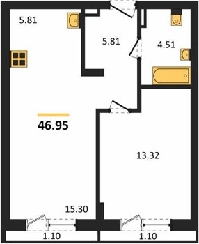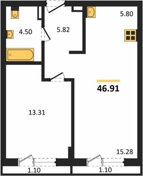 Площадь от 45.5 м2
