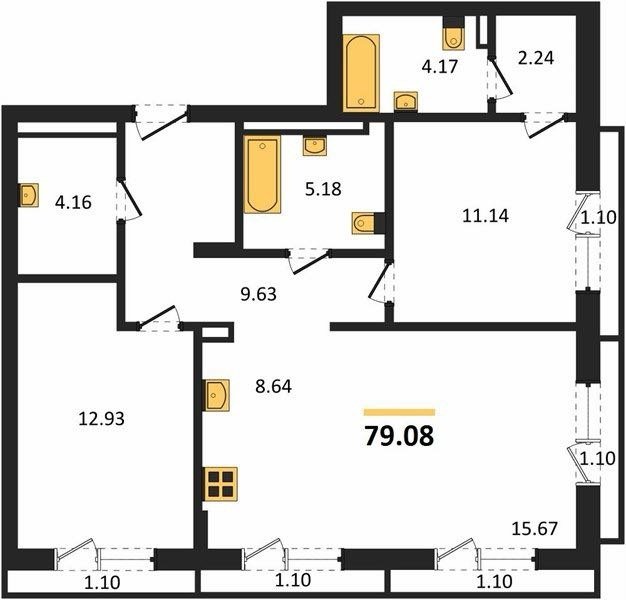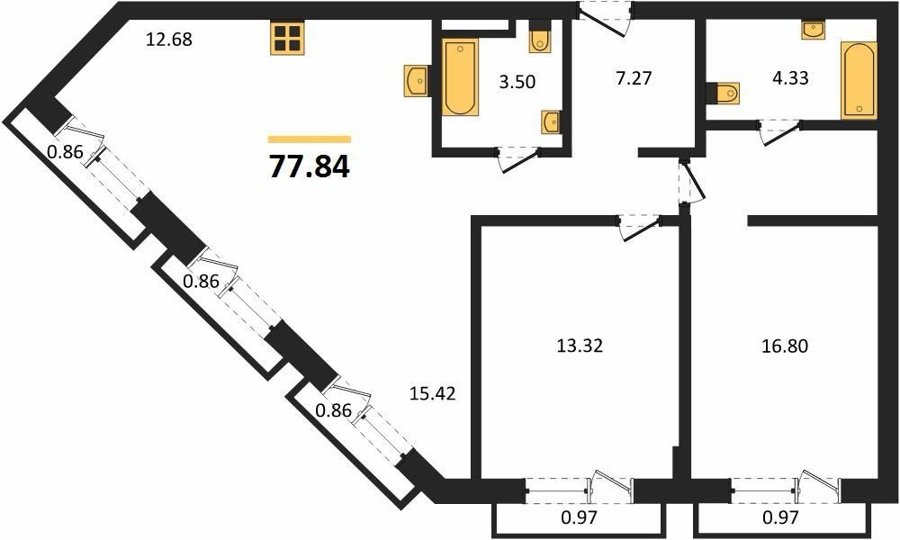 Площадь от 77.5 м2