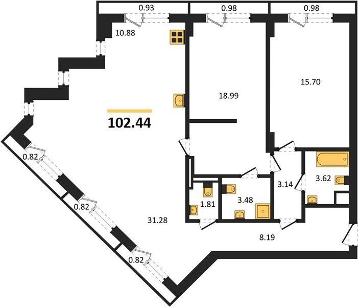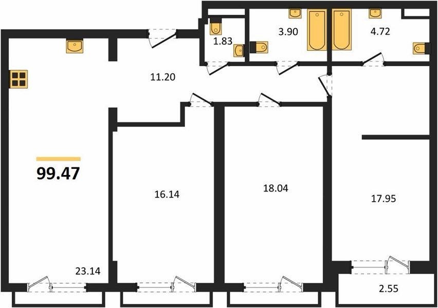 Площадь от 99.5 м2
