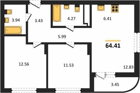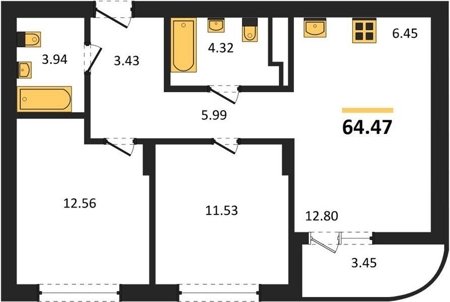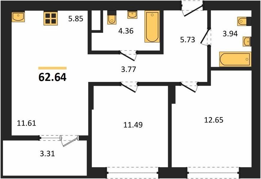 Площадь от 62.6 м2