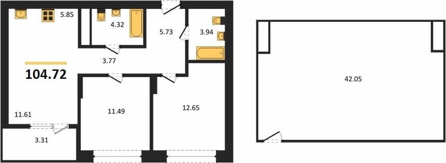 Площадь от 42.1 м2