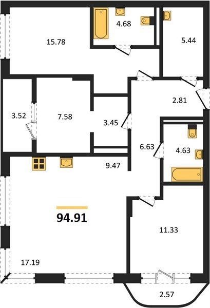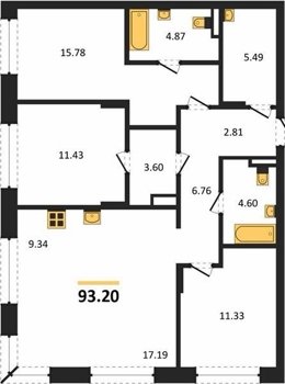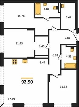 Площадь от 92.9 м2